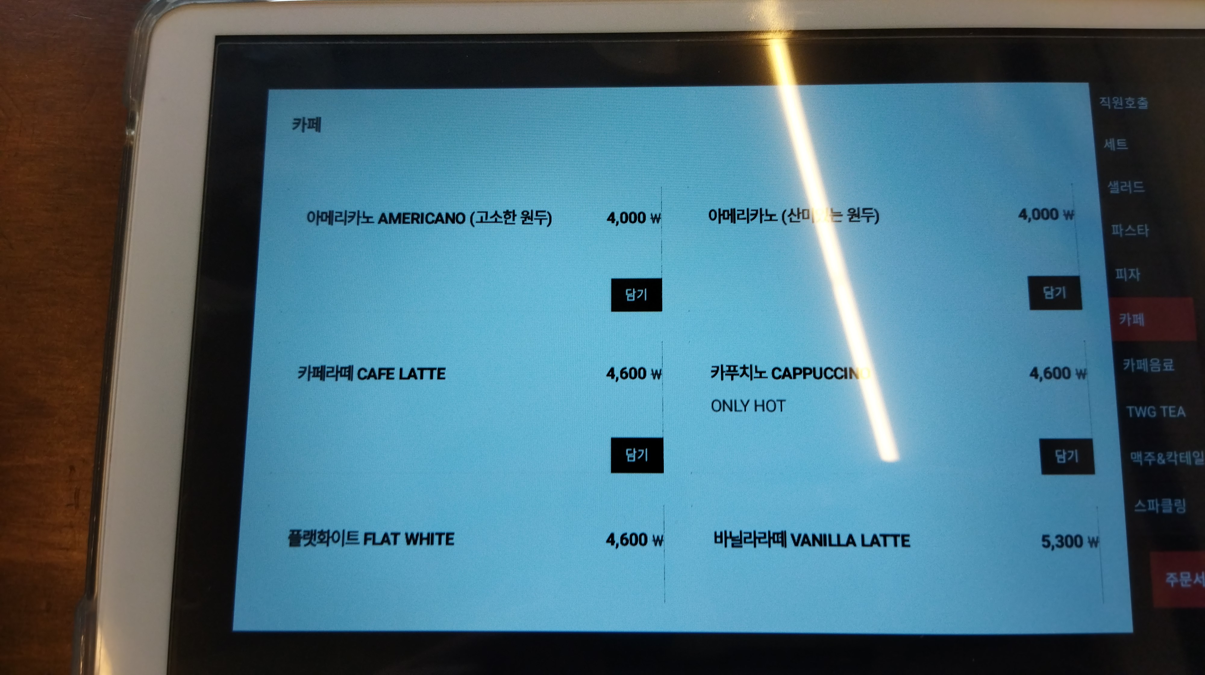 아메리카노 4,000원, 맥주 7~8,000원 선이다.