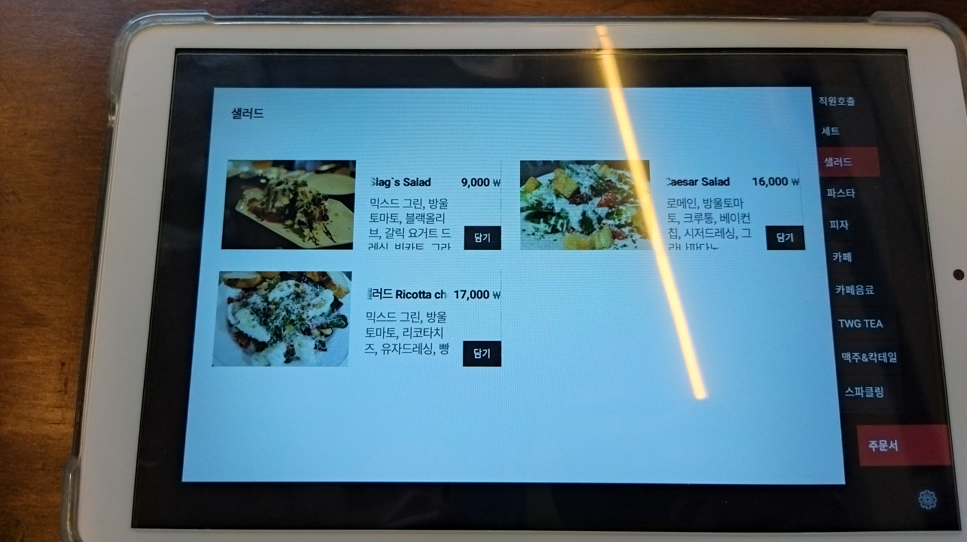 샐러드와 다양한 파스테 메뉴를 갖추고 있다.