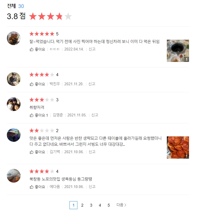 평점은 높은 편. 저녁시간에 오면 많이 붐벼서 서비스에 문제가 있을 수 있다는 생각은 든다. 내 평점은 4점이다. 15,000원에 이정도 맛이면 노포의 좁은 자리와 시끄러움 등을 생각해도 높은 점수를 줄 수 밖에 없다. 시내 노포인만큼 주차는 알아서 해야 한다.