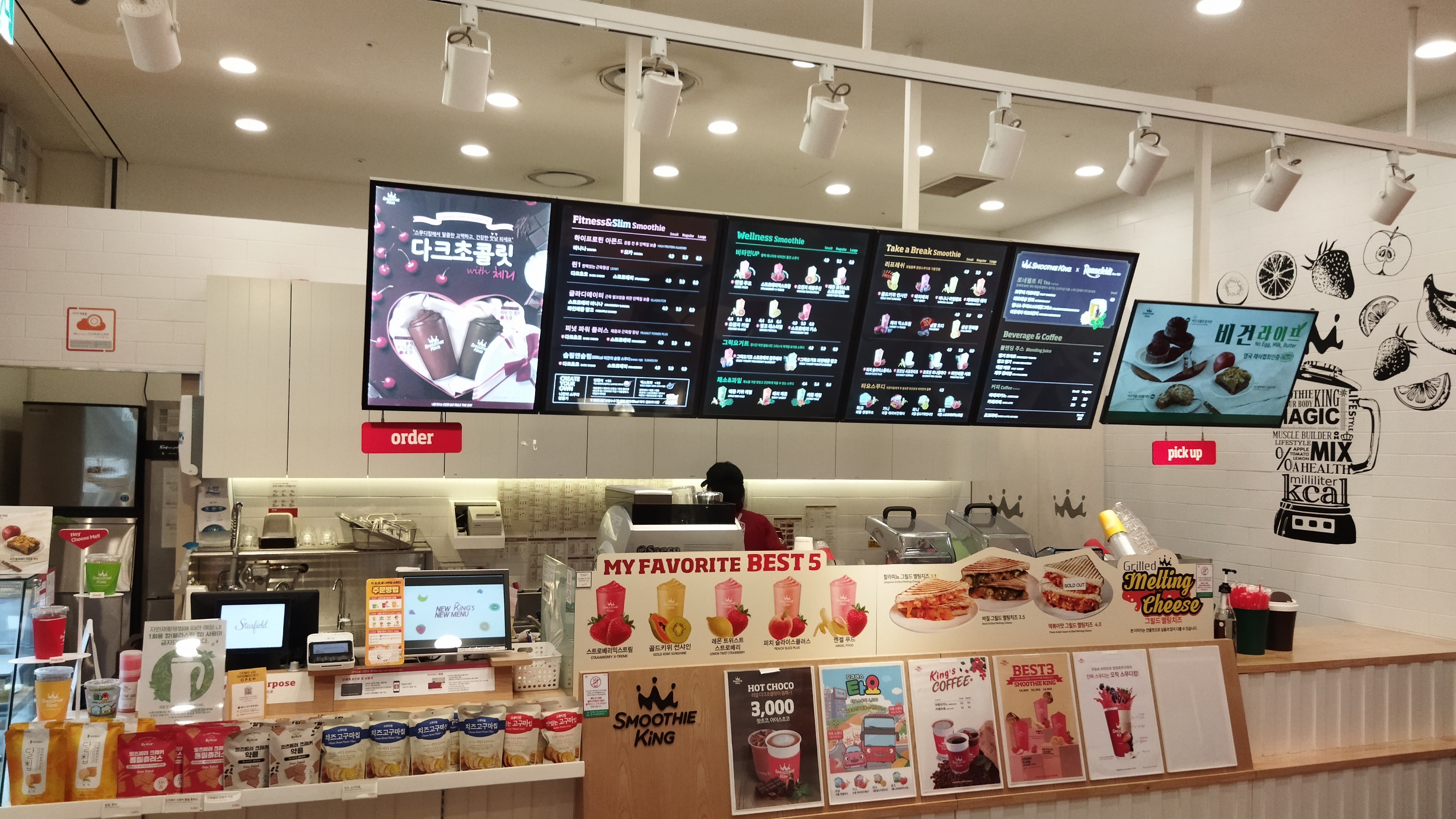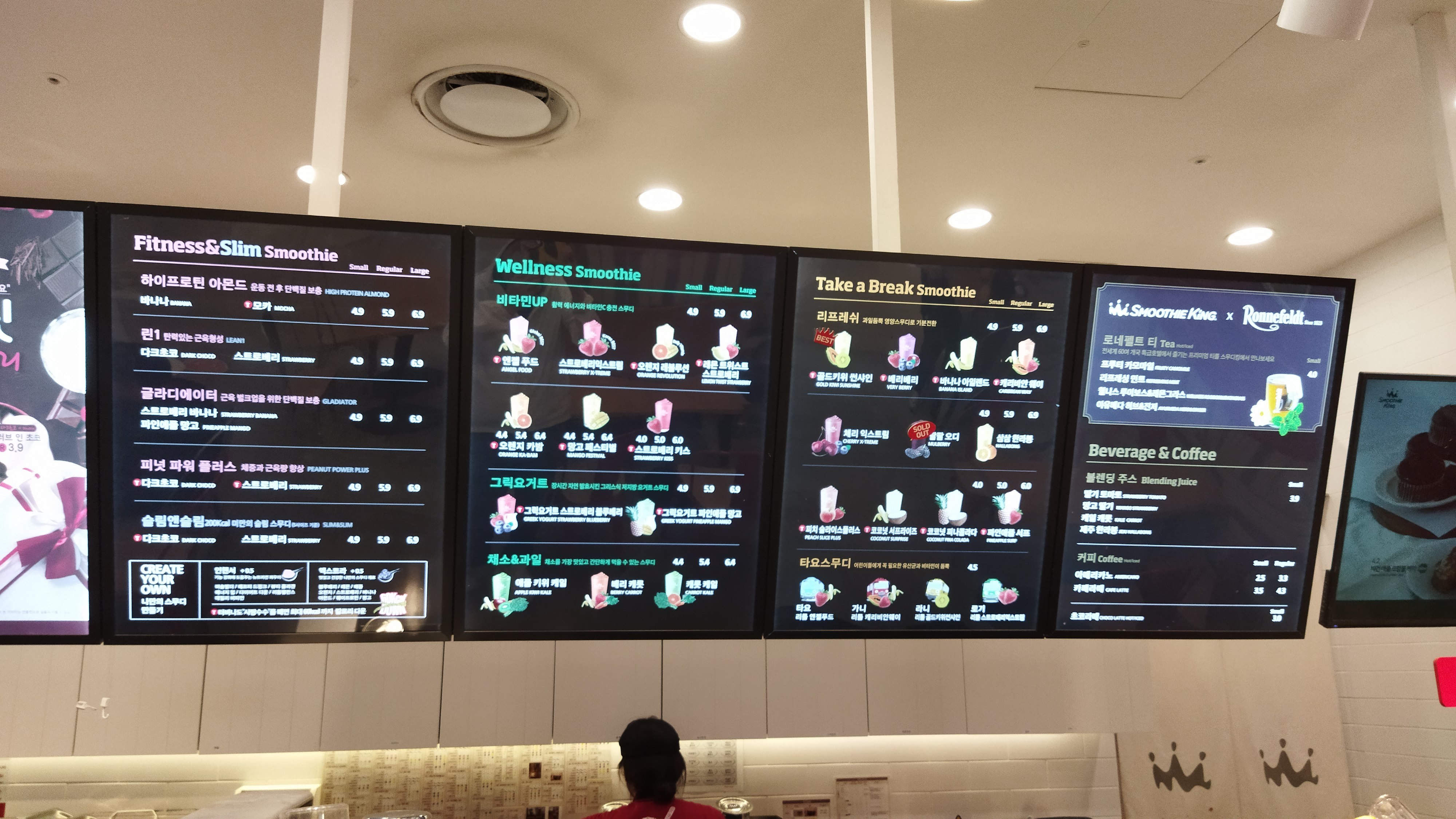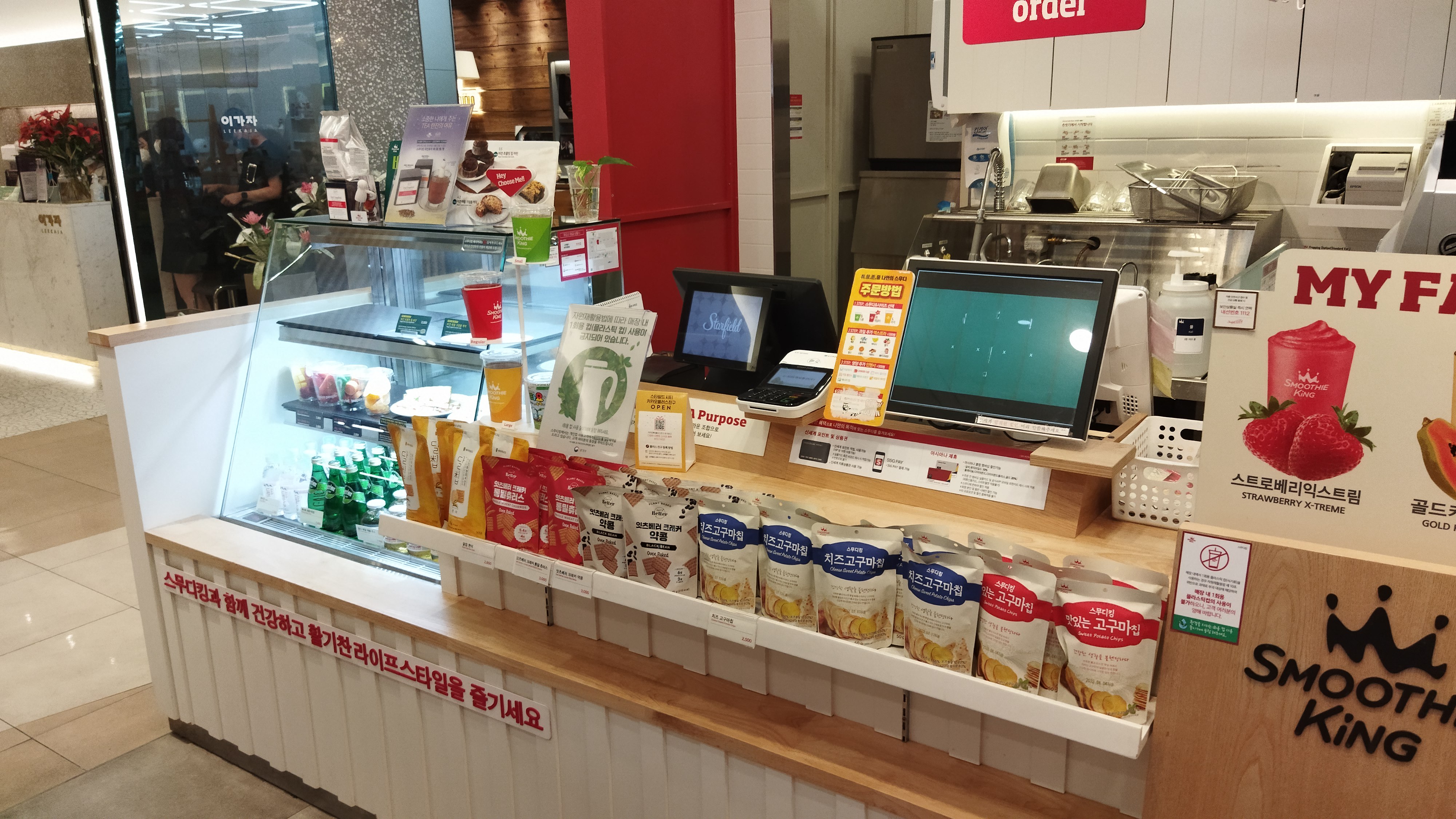 입장 전 일부러 에스컬레이터로 이동하며 매장들을 둘러본다. 3층에서 스무디킹을 발견하고 오랜만에 마셔보기로 했다.