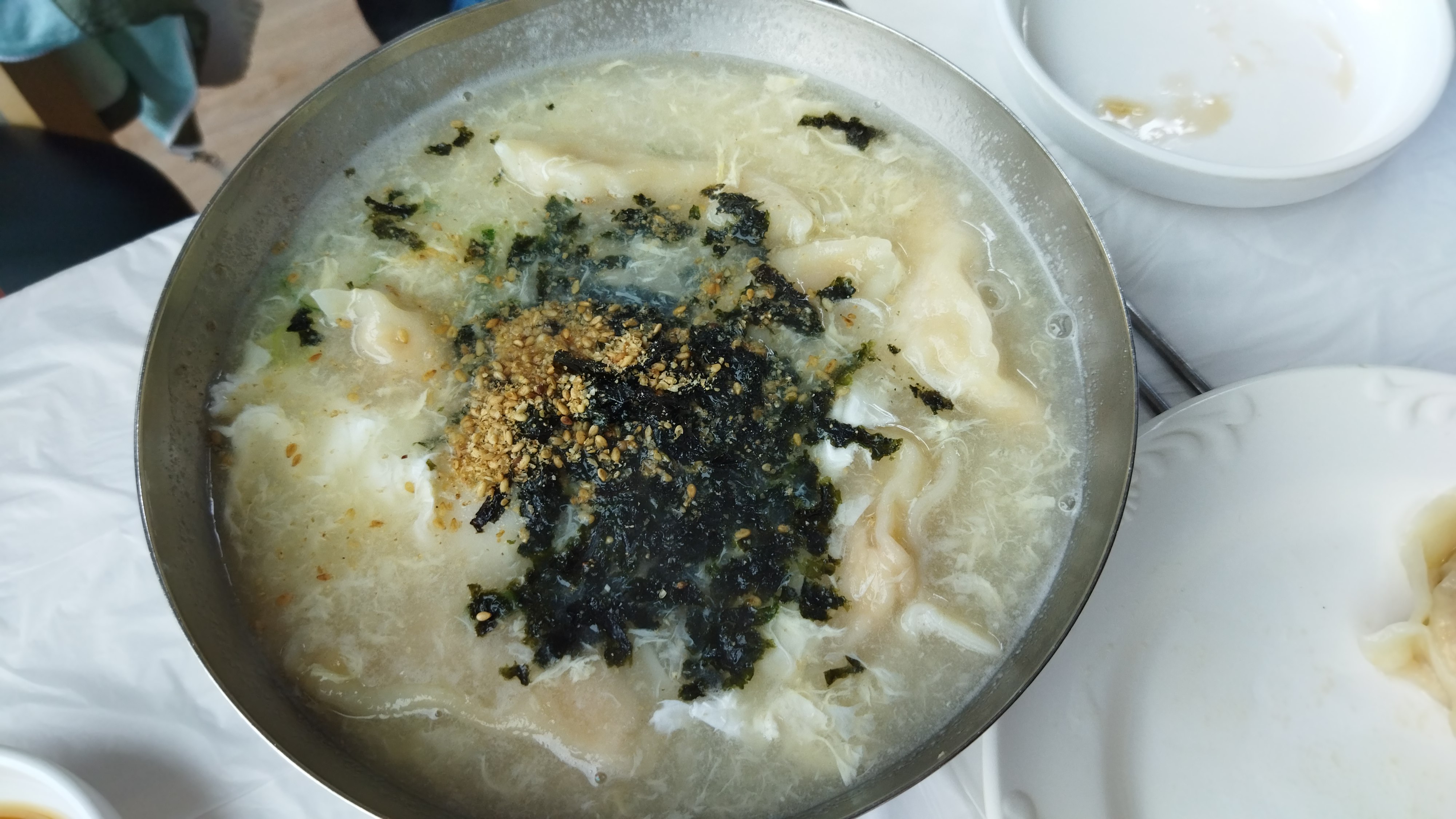 꿩만두, 만두국은 맛이 준수했고 직접 담근 것 같은 김치도 괜찮았다.