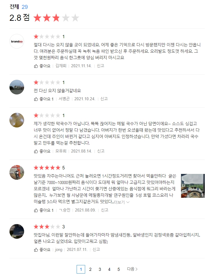 평점은 2.8점. 내 평점은 위치, 가성비 등을 고려해 3.5점이다. 대단한 맛집은 아니었지만 대관령, 용평 등으로 여행할 경우 아쉽지 않게 식사가 가능하기 때문이다.