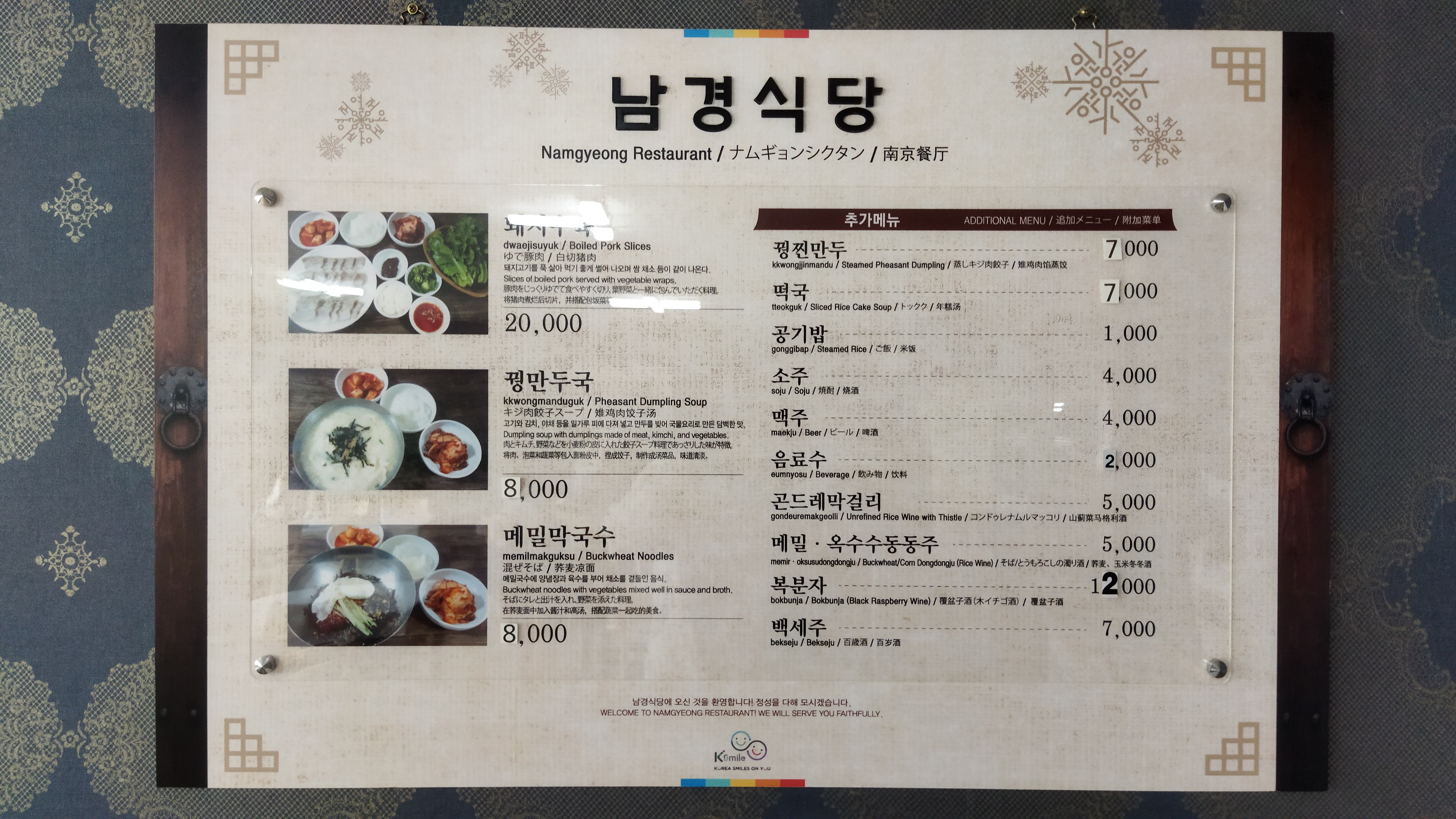 꿩찐만두 7,000원, 메밀막국수 8,000원, 꿩만두국 8,000원 등을 주문했다.