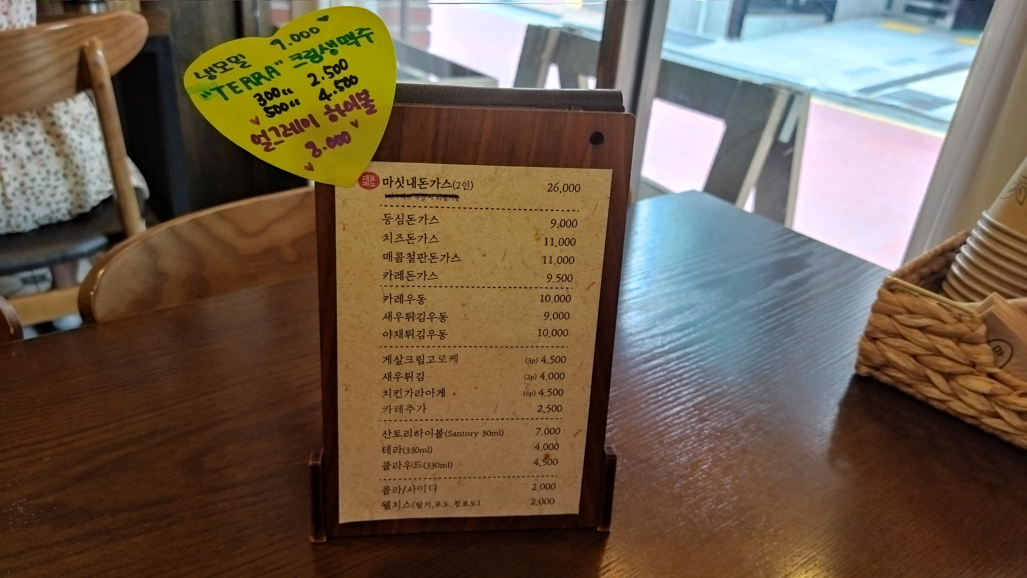 등심돈까스 9,000원을 주문한다. 마싯내돈까스 2인이 시그니쳐고 카레우동도 유명하다고 한다.