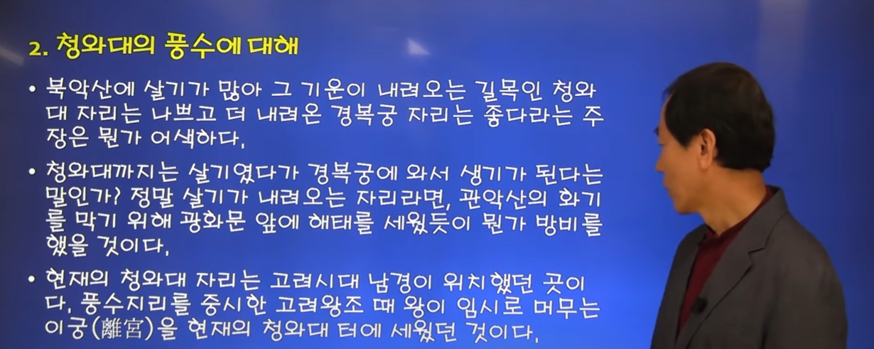 청와대의 풍수에 대해서는 객관적으로 볼 필요가 있다. 이근철 교수가 정리한 내용이 좋아 보인다.