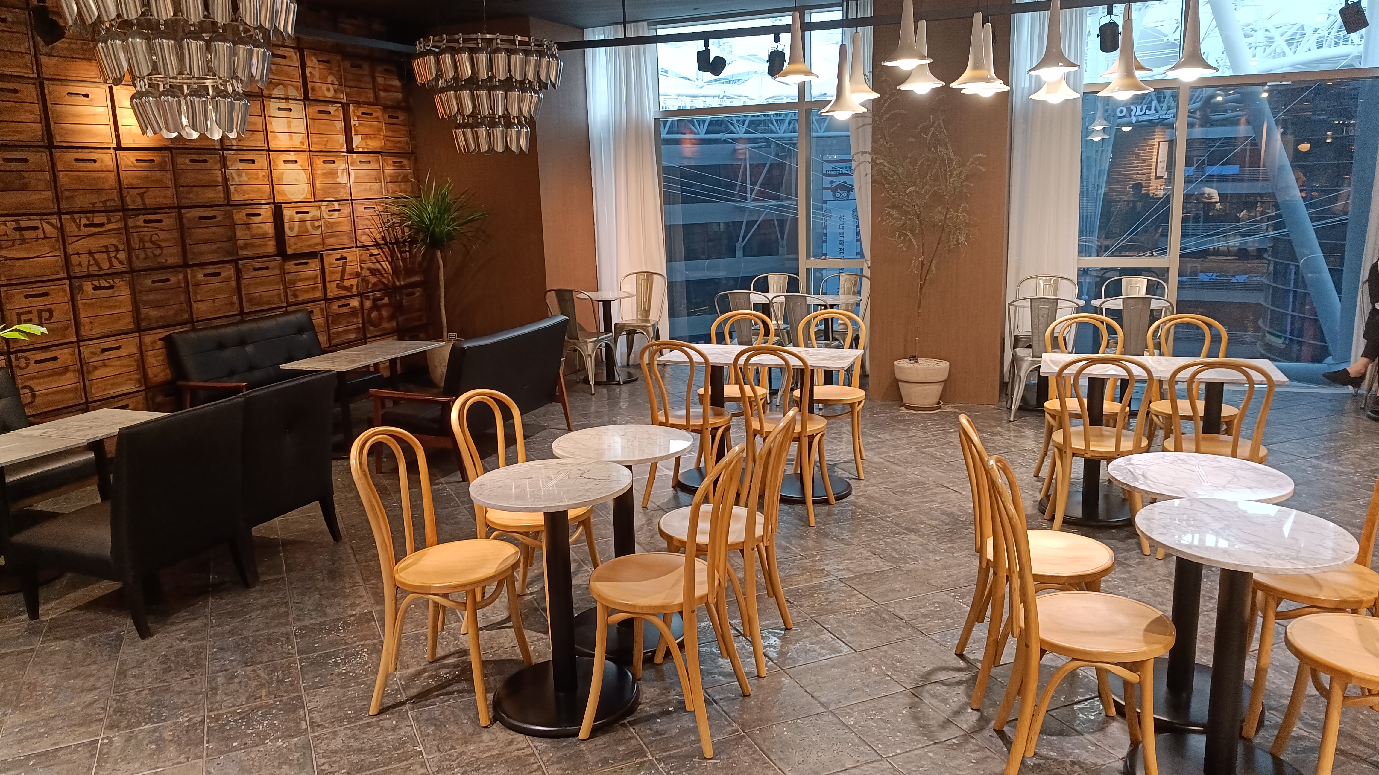 아주 멋진 경치는 아니지만 통유리 너머로 경관이 나오는 카페다.