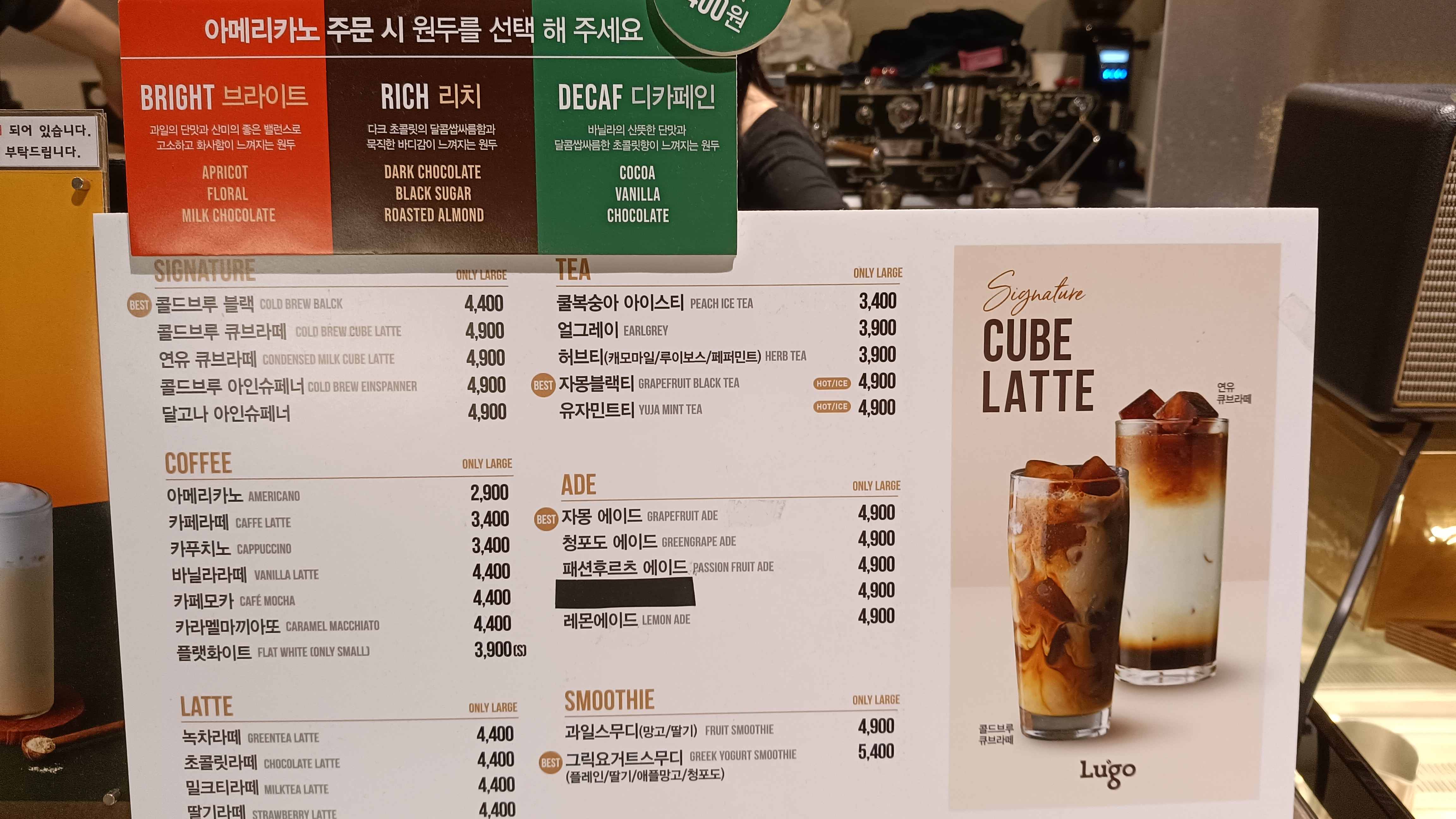 카라멜마끼아또 4,400원 등 가격이 착한 편이다.