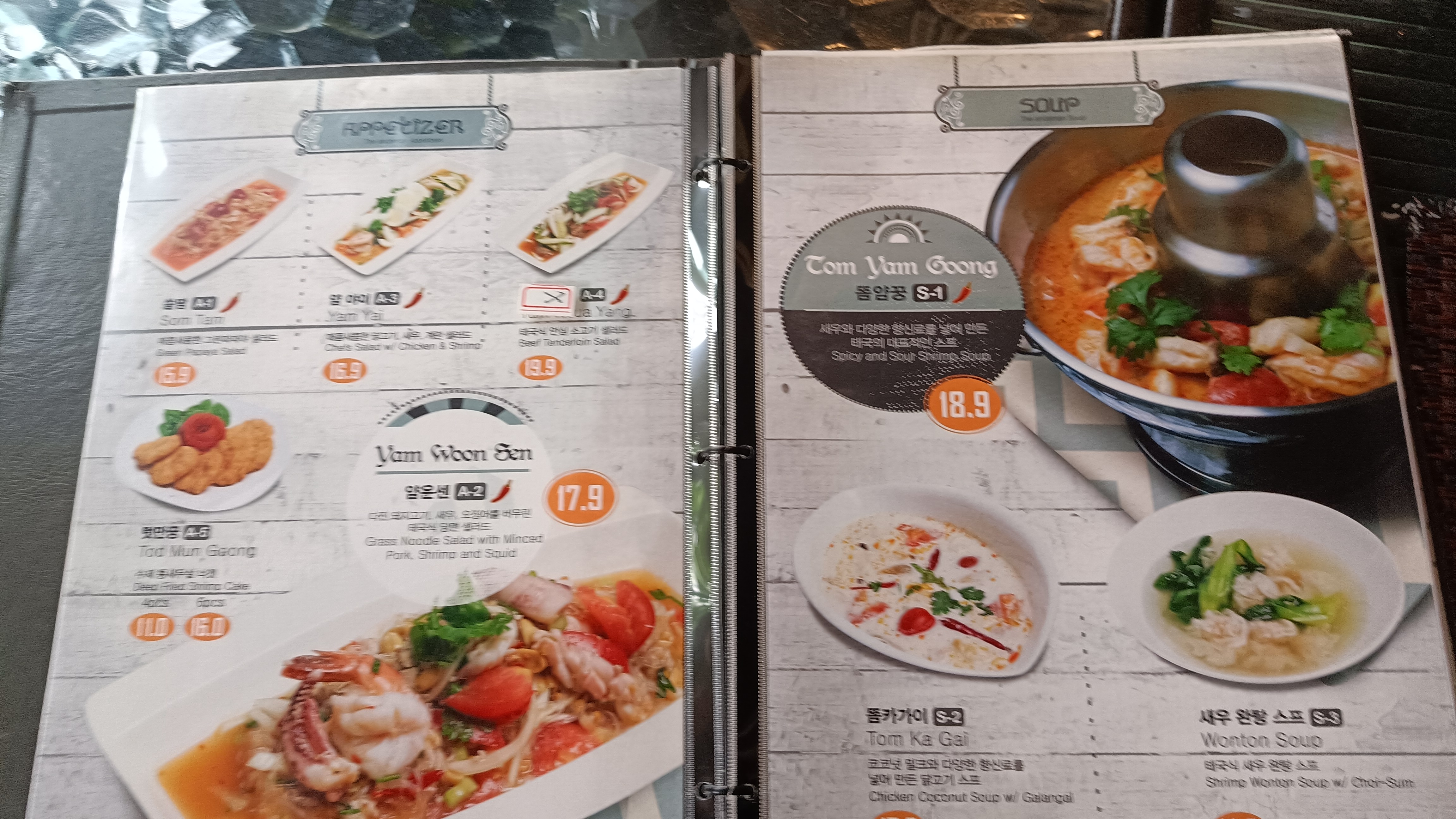 똠양꿍이 18,900원인데 대표메뉴 중 하나라고 한다.