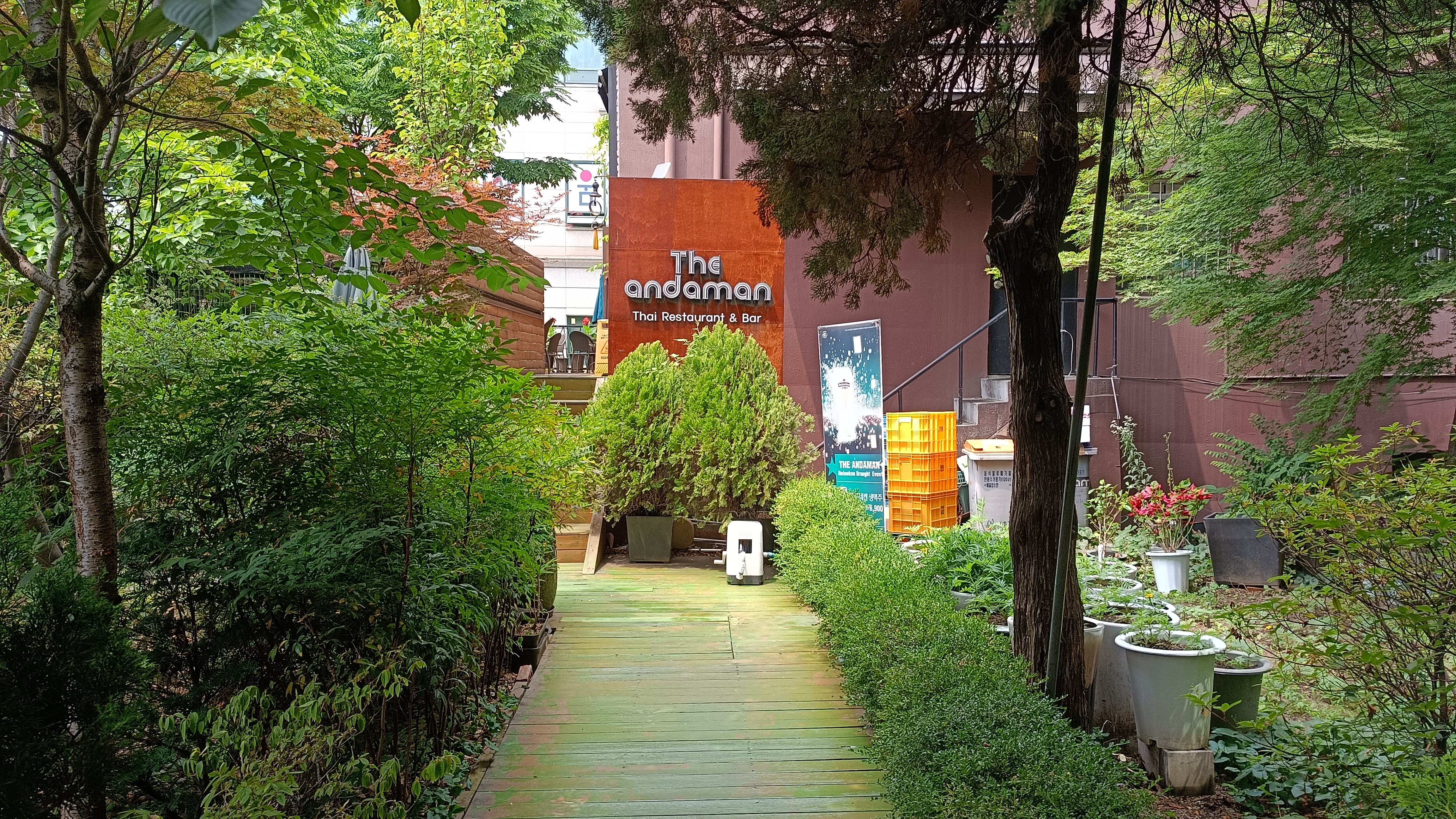 주차장 반대편 대로면에서 정문이 있는거 같았다. 인테리어도 태국을 연상케 한다.
