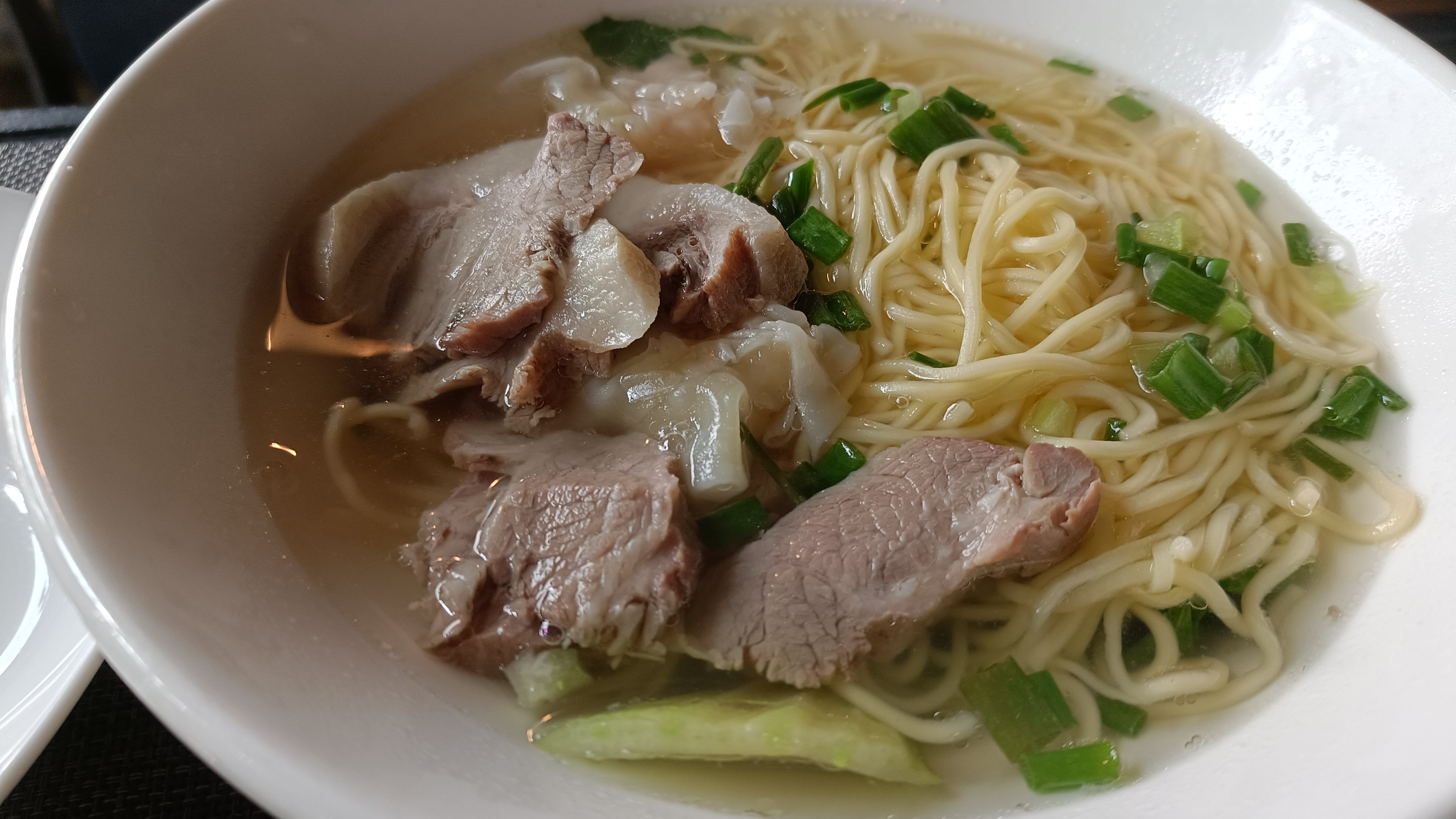 맑은 국물에 고기와 면이 들어간 에그누들, 자극적이지 않고 맛있었다.