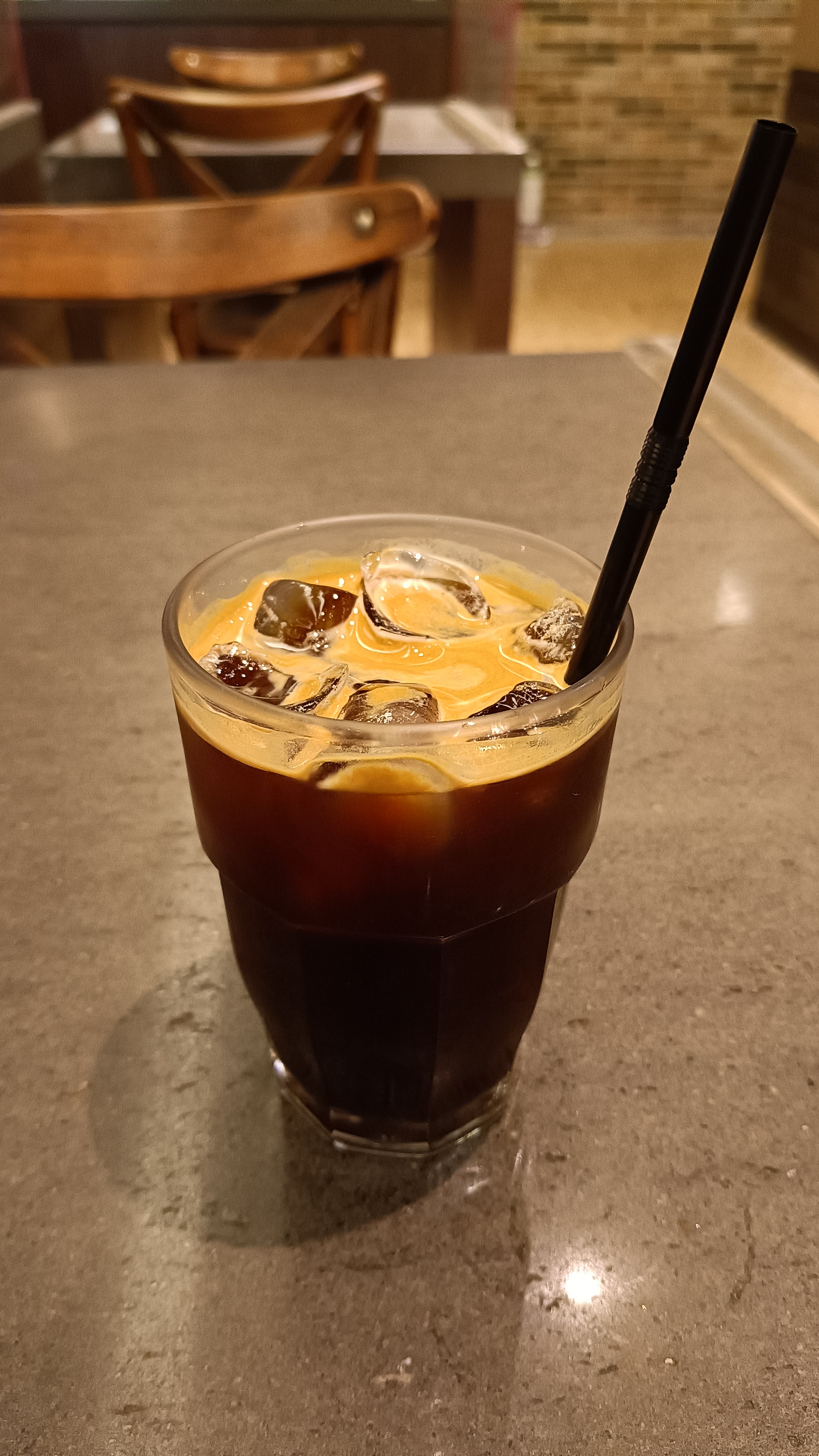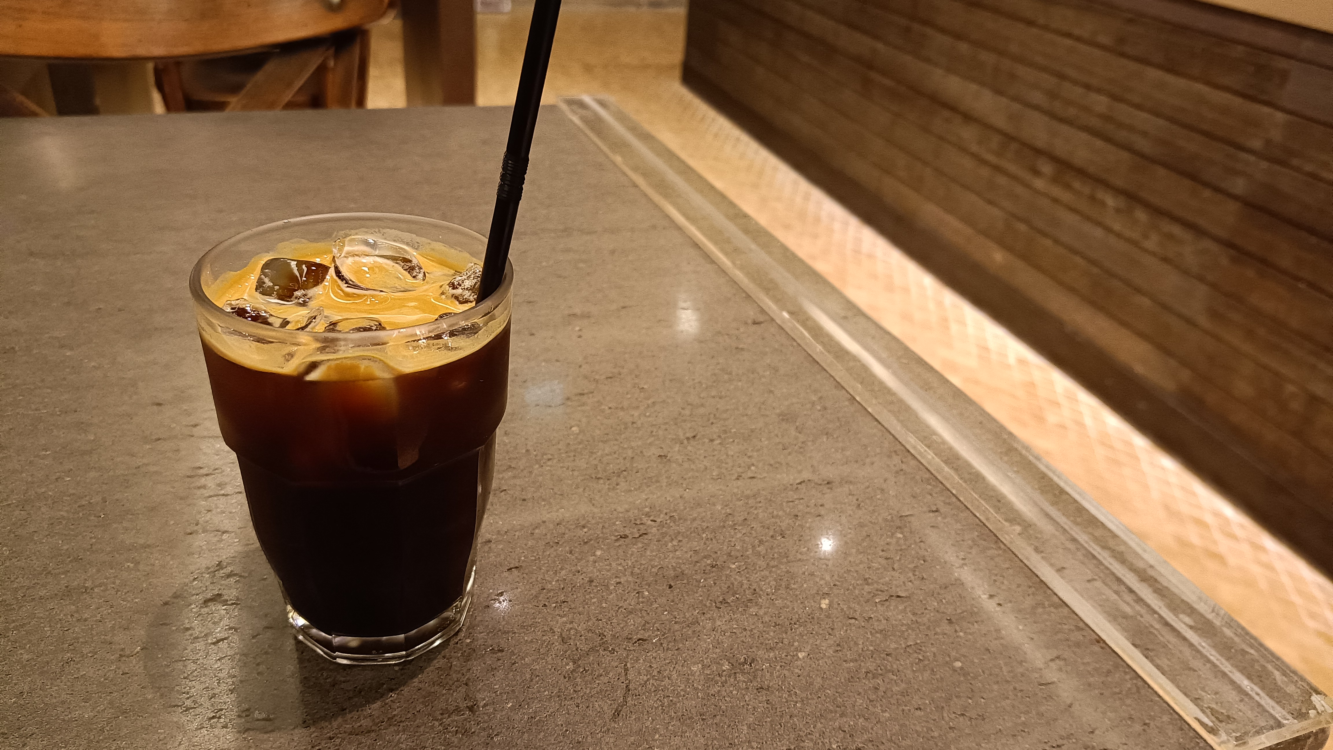 사이즈라도 클 줄 알았더니 웬걸 물잔에 빨대를 꼽은 이상한 형태의 커피가 나온다.