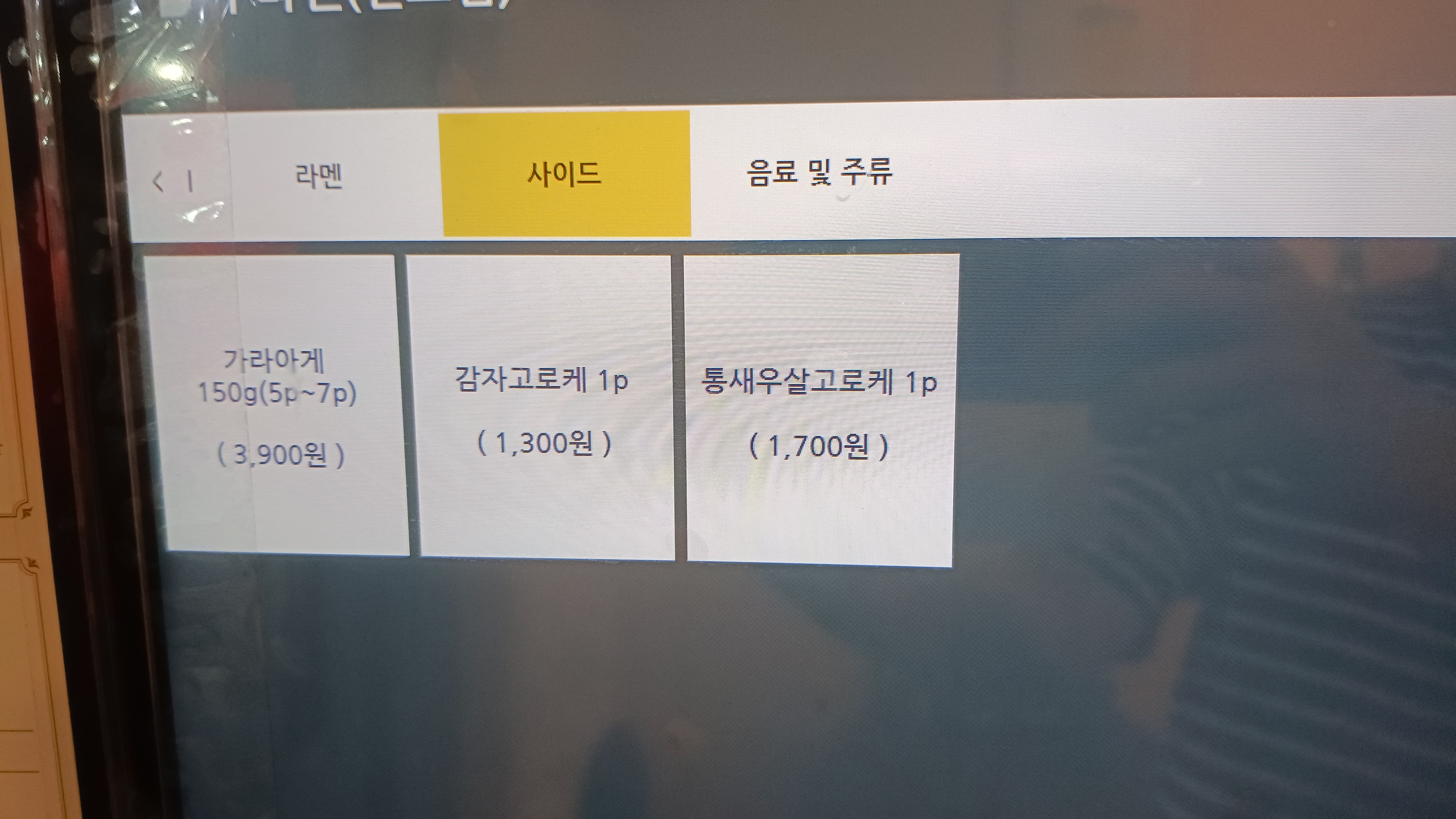 키오스크로 주문하는데 돈코츠라멘 8,000원, 나머지 라멘들은 9,000원 선이었다.