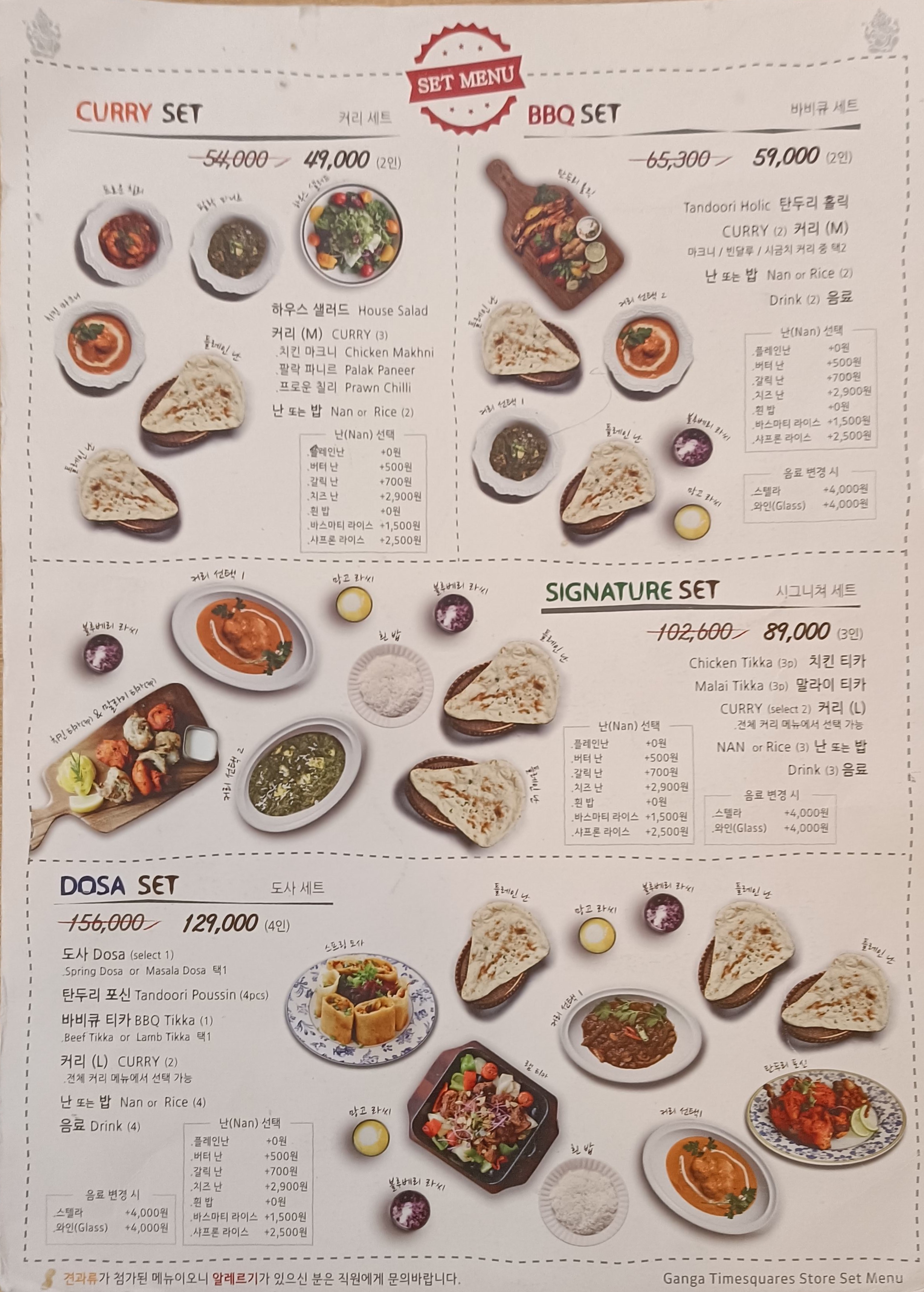 강가는 대부분의 메뉴가 2만원대 중반이고 혼밥이 어려운게 단점이다. 그러나 인도식 커리가 먹고 싶을 때 몇 안 되는 대안이고 맛도 괜찮아서 종종 찾는다.