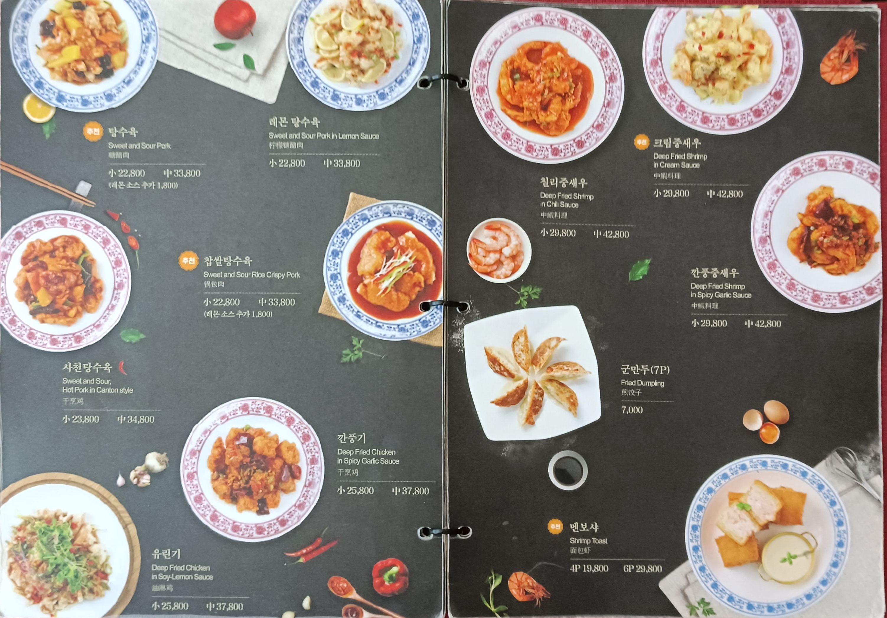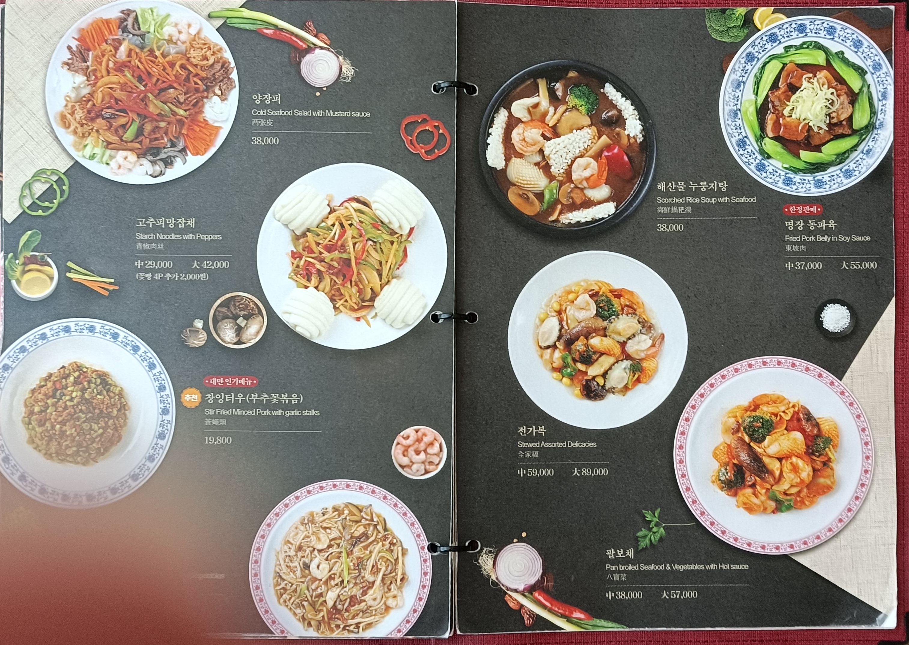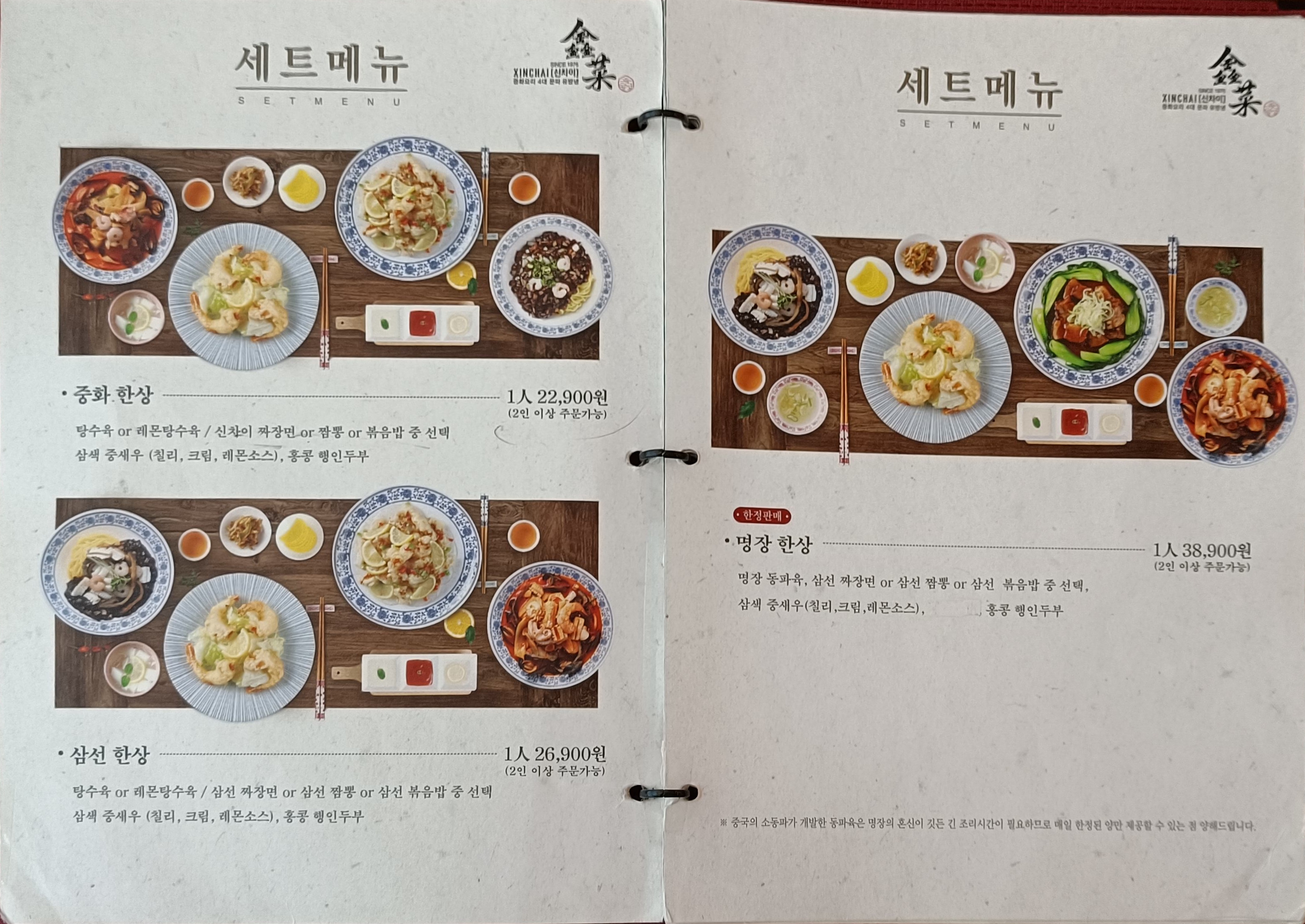 삼선짜장면이 13,900원, 삼선짬봉이 14,900원...부담스러운 가격이다.