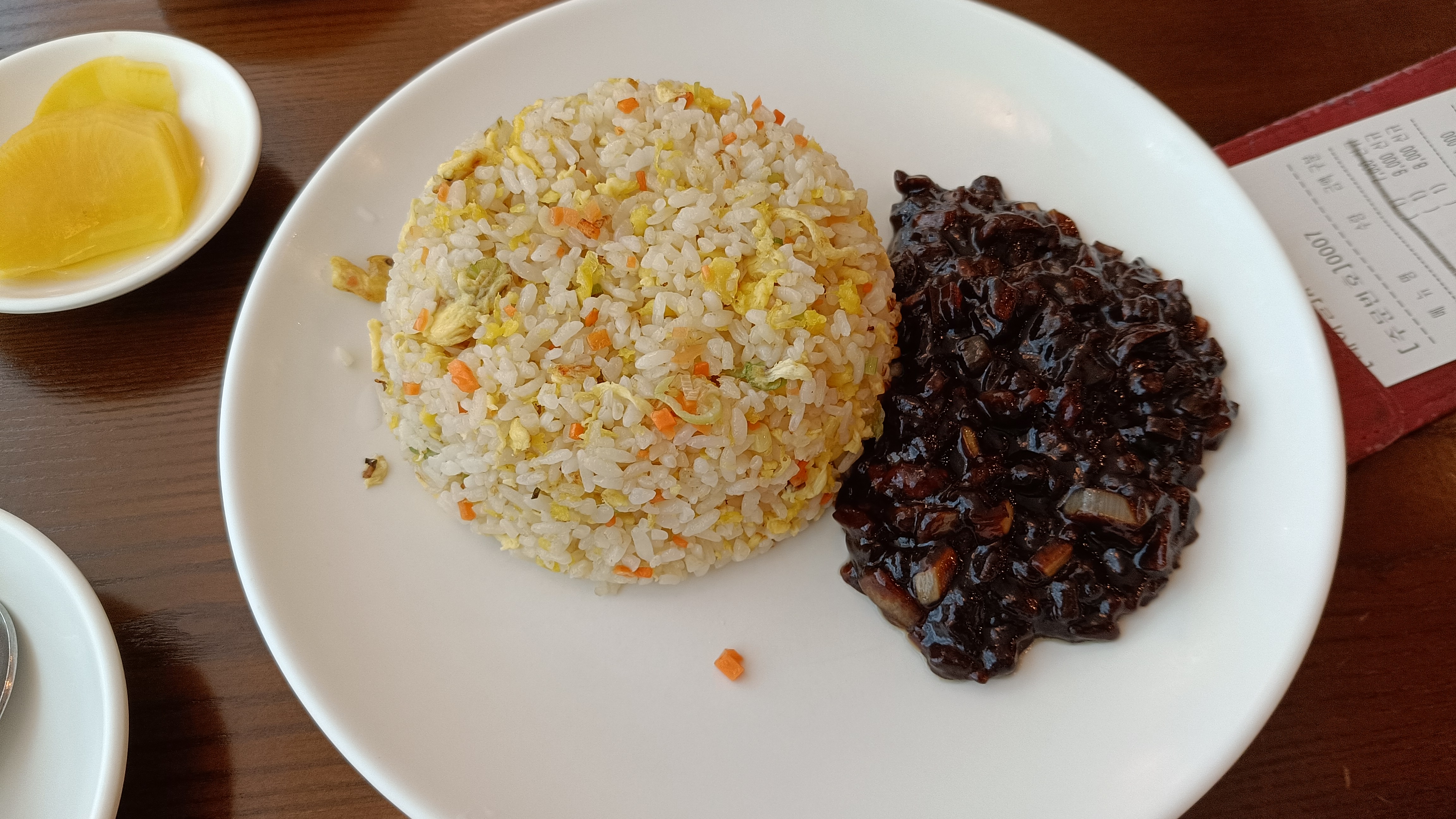 볶음밥은 부드럽거나 촉촉하지 않고 밥이 딱딱하고 짜장은 짜기만 하다.