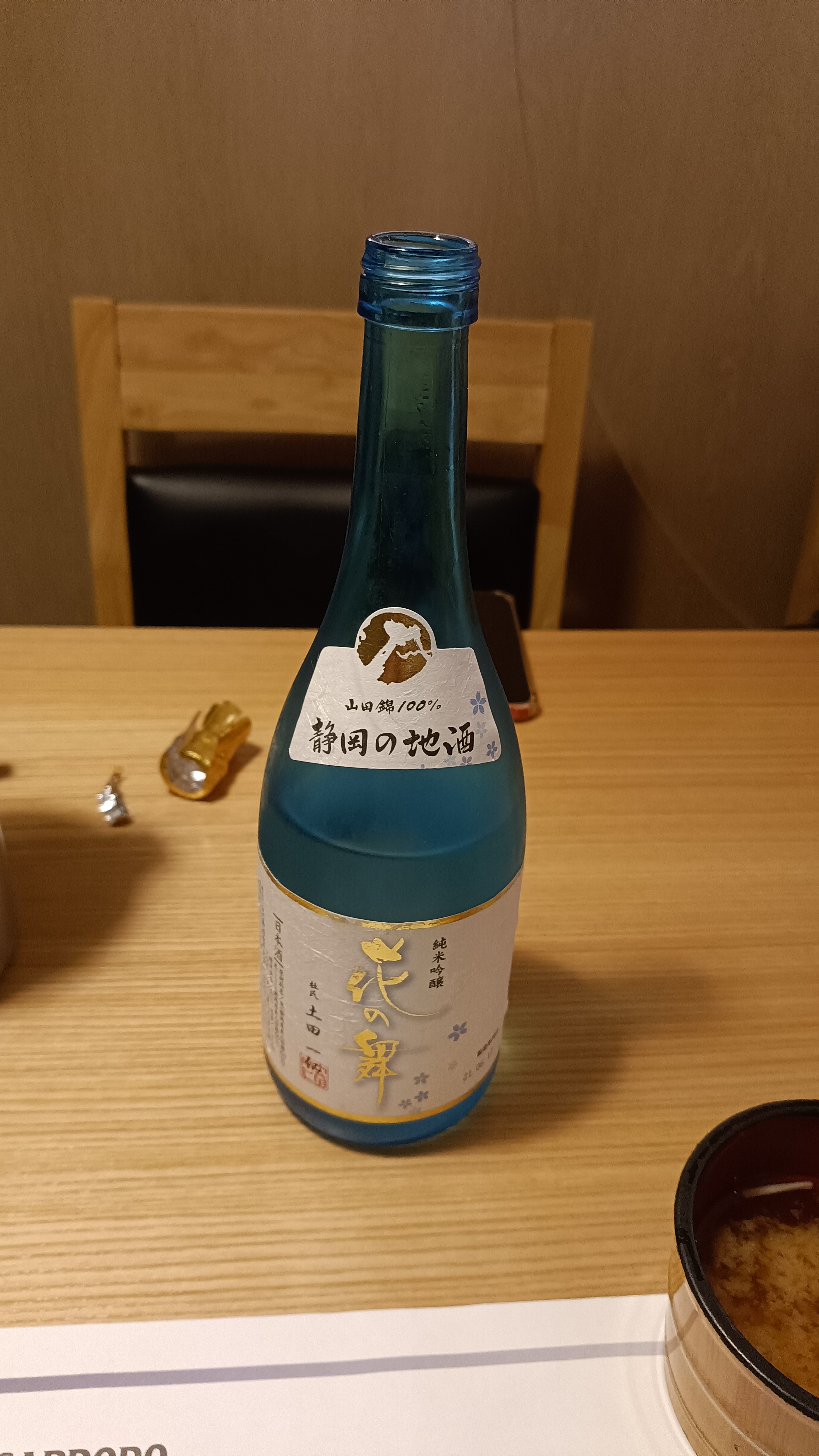 고급 일식집에 왔으니 사케도 시킨다. 친구가 추천한 시즈오카산 꽃의 춤(花の舞).
