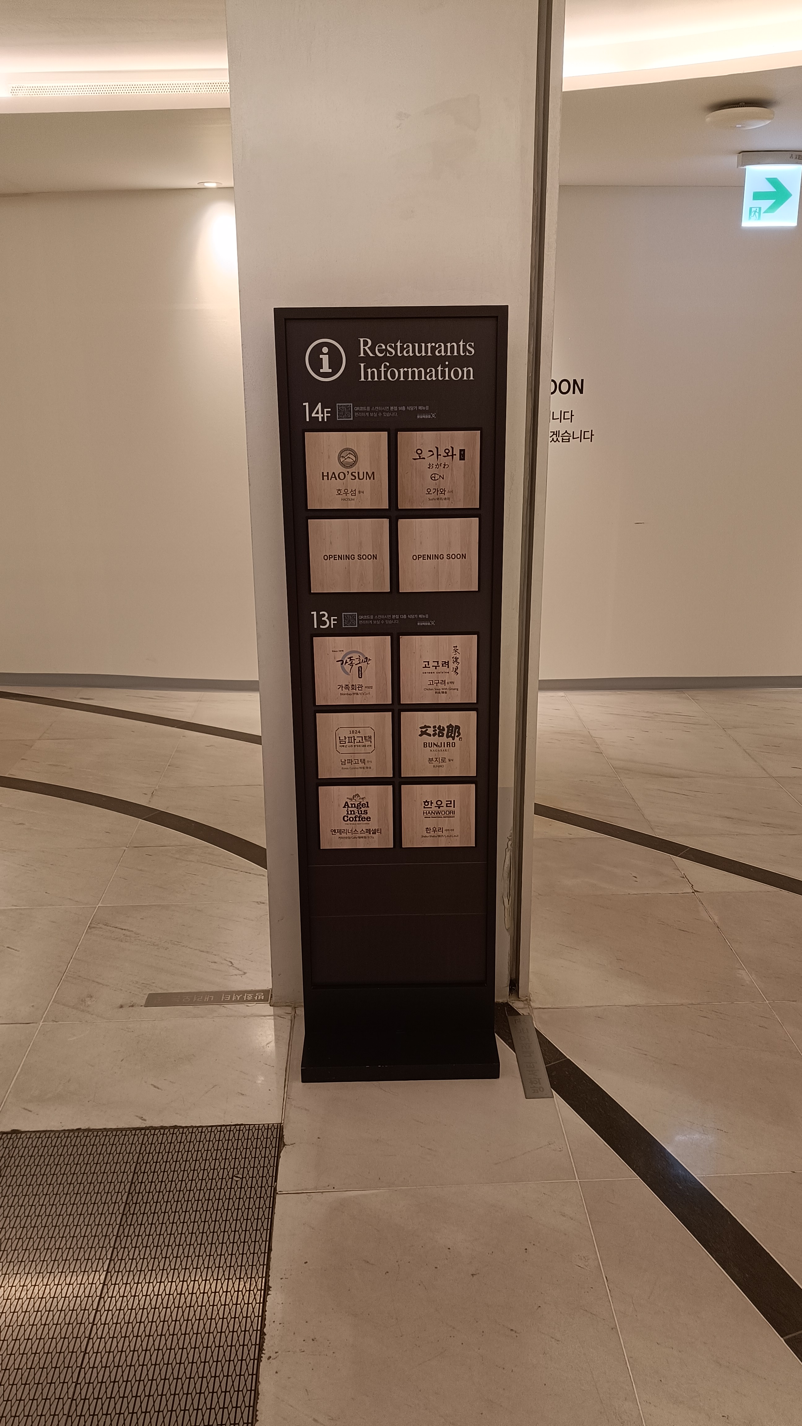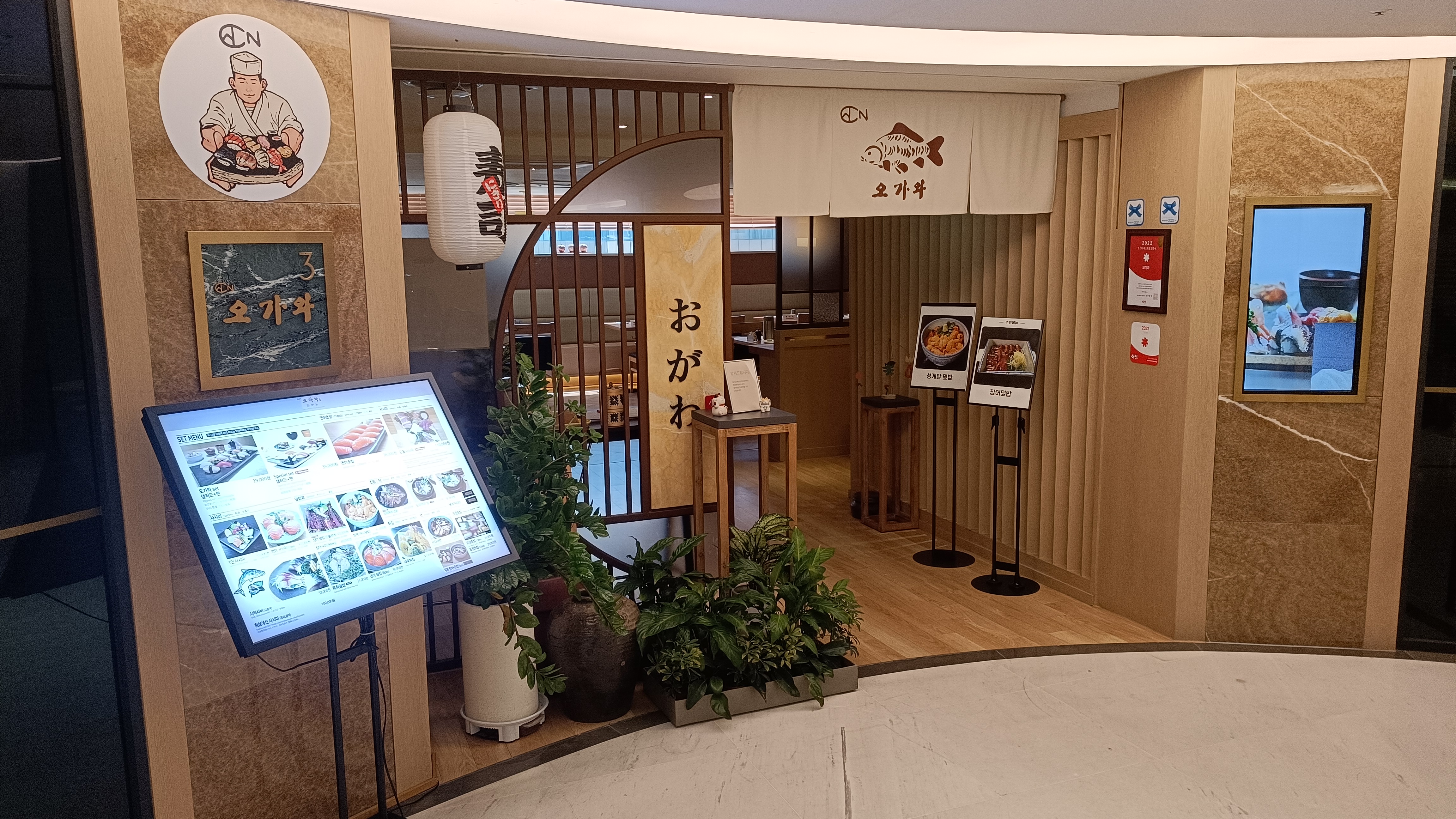 롯데백화점 소공동 본점 식당가는 에스컬레이터로 올라가다보면 면세점층을 통과해야 한다. 에스컬레이터를 올라서면 바로 입간판이 나온다. 14층에 오가와가 있다.