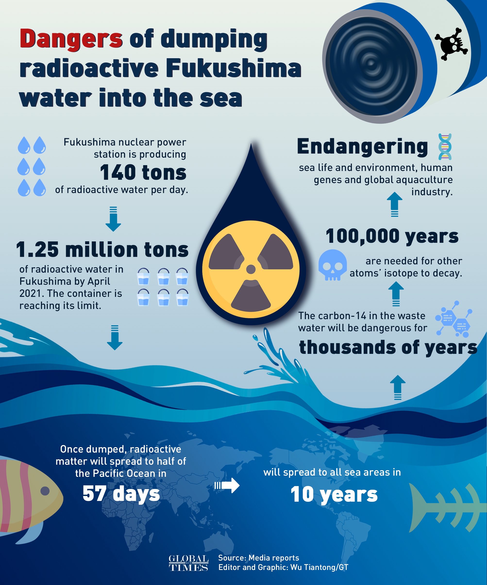 알프스에 의해 처리된 물도 방사능 물질이 기준치의 최소 100배 이상 나온다는 사실은 확인되었다. 이런 오염수가 지금 차 있는 탱크만 버리는데에 30년, 추가로 하루에 140톤씩 나오니 이게 얼마나 이어질지는 아무도 모른다. 이 오염수는 단 57일만에 태평양의 절반에 확산되고 전세계 모든 바다로 퍼지는데 10년이 걸린다.