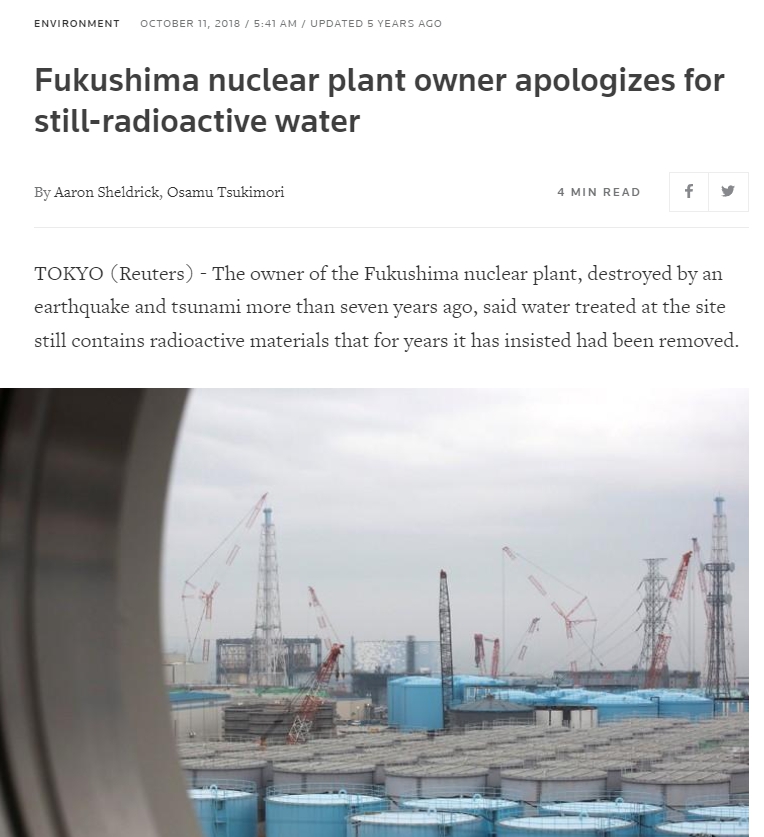 상황이 이런데 ALPS로 처리하면 안전하다고? 일본 정부가 알프스로 처리하면 삼중수소 외엔 다 걸러진다며 삼중수소만을 가지고 안전성을 홍보하고 있지만, 삼중수소 외 다른 어마어마한 방사능 물질들에 대해서는 숨기기 급급했다. 이건 심지어 오늘(에서야) KBS마저 보도했을 정도로 잘 알려진 사실이다.이게 불과 4년 전인 2018년에 발생했던 사건이다.