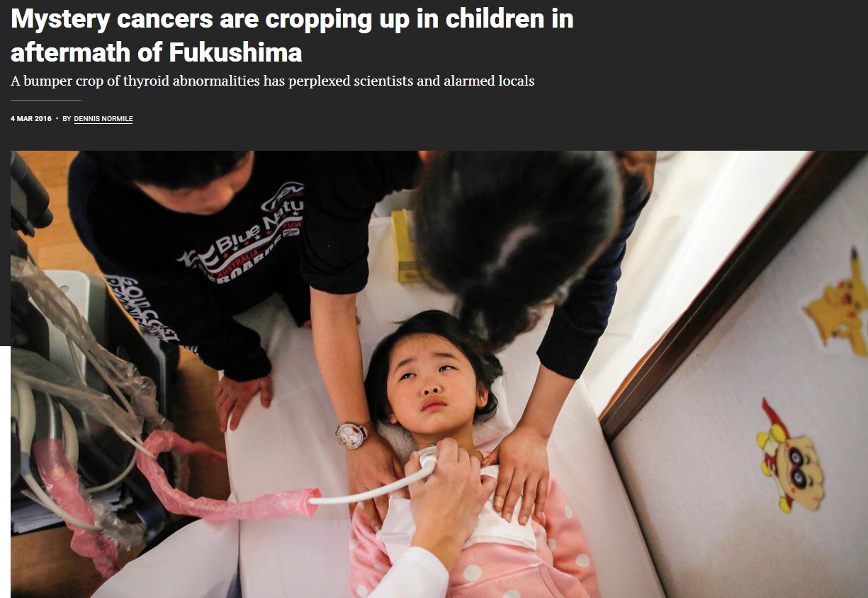 우선 가장 중요한 일본 내에서의 역학조사는 아베 정권 하의 방해와 차단으로 제대로 이루어지지 못했지만, 몇몇 책임감 있는 의사들의 보고에 의해 어린이들 사이에 알 수 없는 암이 급증했다는 보고가 수차례 있었다.