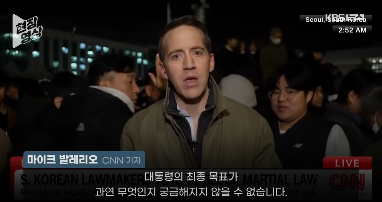 하지만 CNN 기자마저도 윤석열의 의도를 이해하지 못하고 마는데...사실 여기엔 야밤에 뛰쳐 나온 시민들과 국회의원들에 의해 계엄이 신속하게 해지된 영향도 있지만.