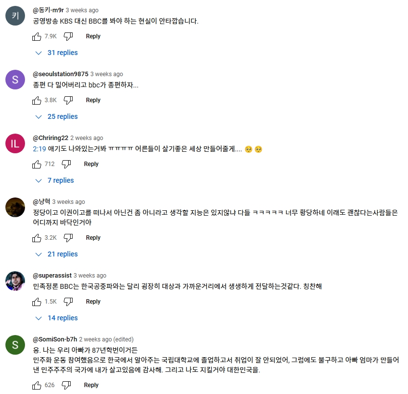 조선 기레기들이 찍어내는 찌라시와는 분명히 차별화된 BBC에 대한 고마움이 댓글에서도 이어지고