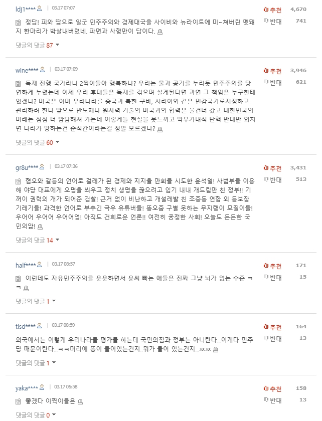 네이트 뉴스는 진짜 오랜만에 들어와 봤는데 예상 외로 제대로 된 댓글이 추천을 많이 받았다. 의외였다.