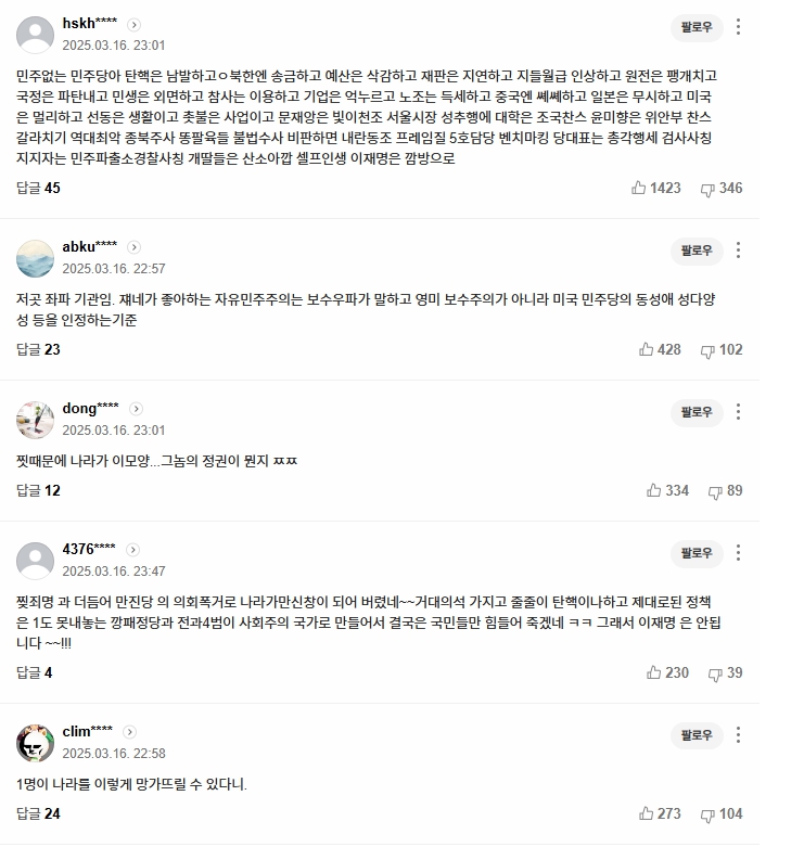 문제는 앞으로다. 앞서 살펴본 닛케이 아시아의 기사도 그렇지만, 조선 최고의 남자라 추앙받는 윤석열과 그 일당, 그를 뽑은 개돼지들이 망쳐놓은 현실이 과연 잘 극복될 수 있을지가 관건이다. 이번 탄핵 국면에서 보여준 젊은 여성들의 민주주의 투혼이 인상적이지만, 이삼대남의 극단적 극우화와 그나마 헌법 수호세력인 민주당 의원들의 조선 선비같은 유약함을 보면 나는 별로 기대하기 어렵다고 생각한다. 대한민국의 미래는 언니들의 적극적인 투표로 그나마 지금 남아 있는 기본값을 유지하는 수준으로 정해지지 않을까 싶다.