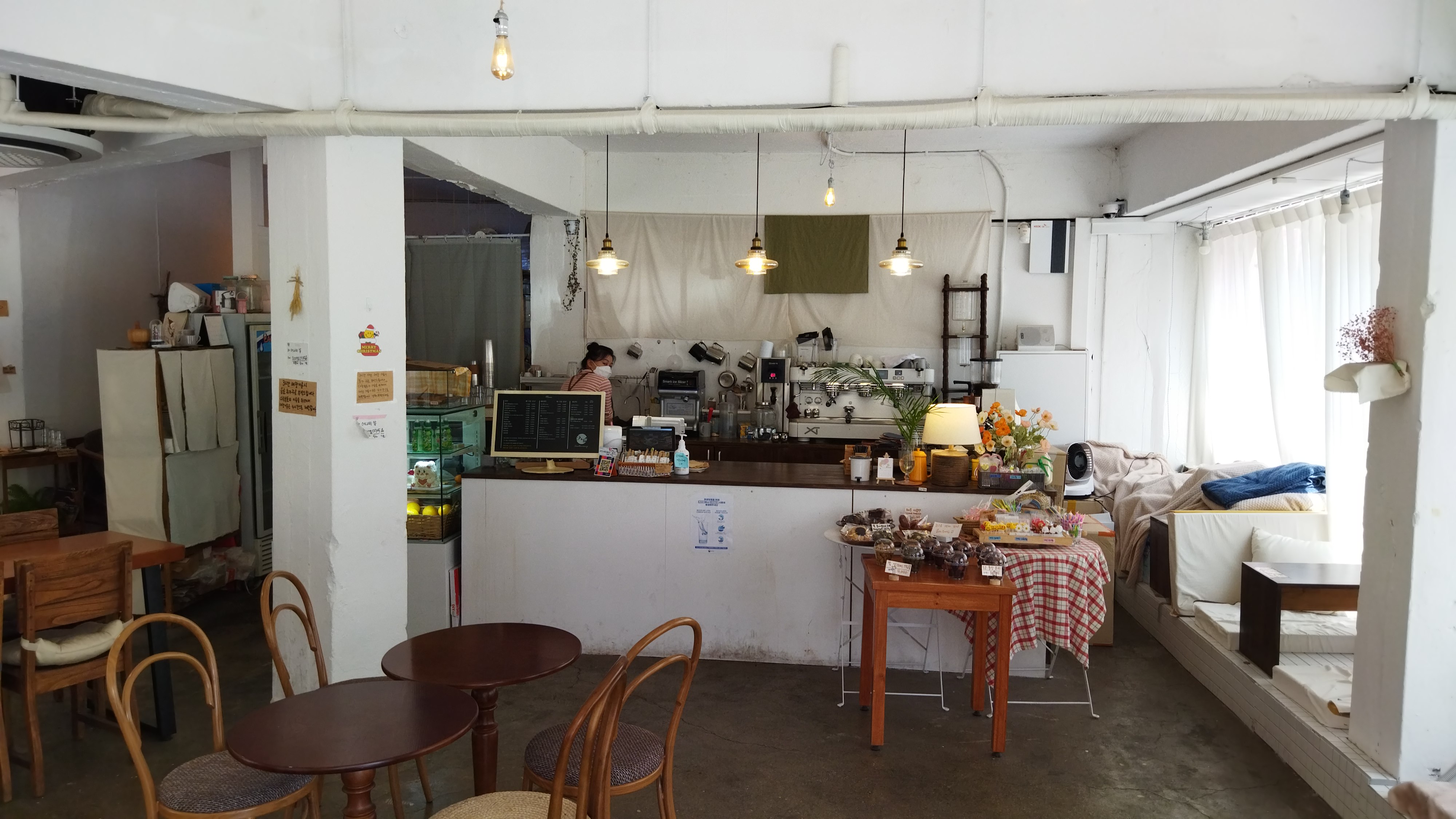 소소하고 효율적인 인테리어에 빵도 함께 팔고 있다.